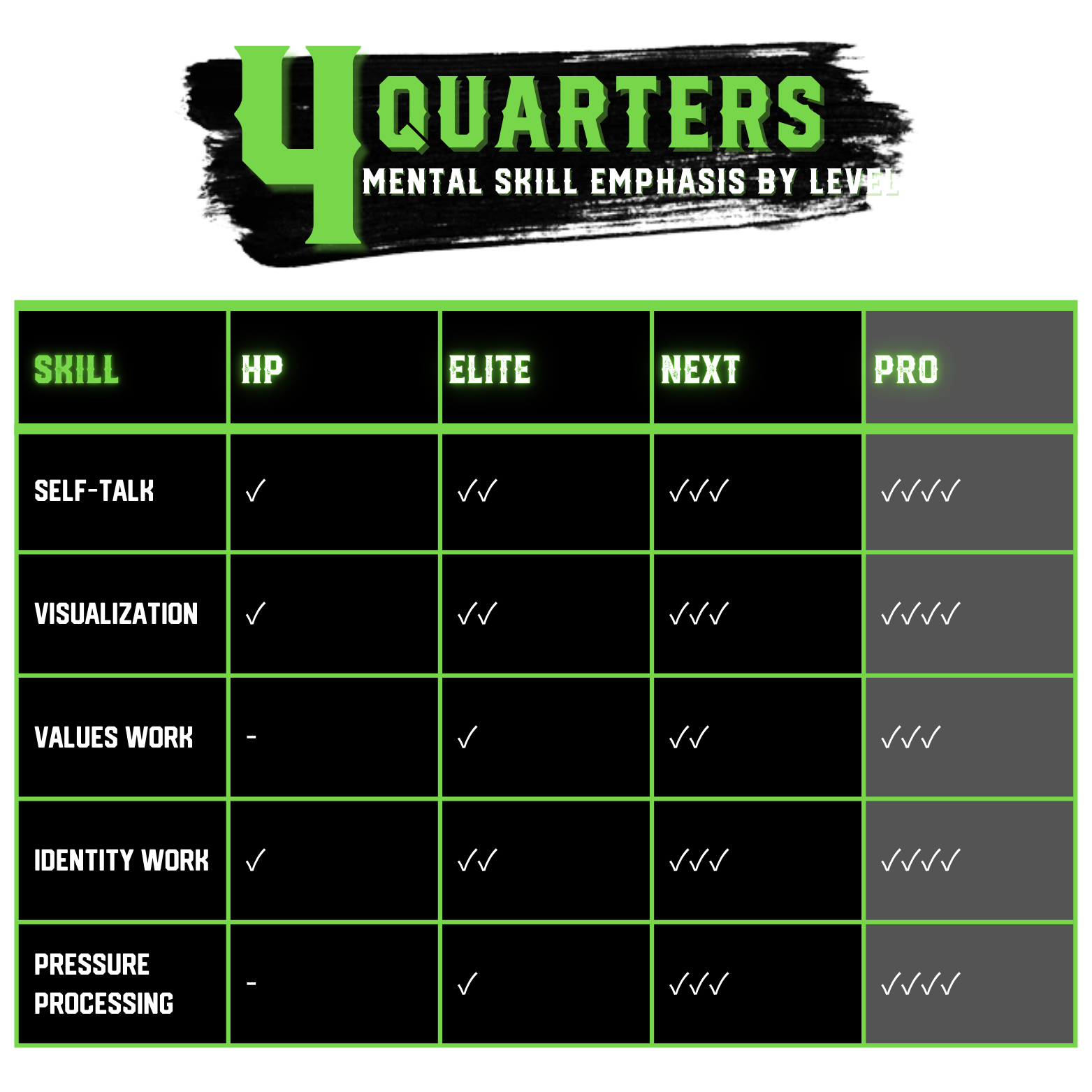 This level anchors confidence in who you are, not in what just happened. Athletes clarify the version of themselves they choose to be under pressure, eliminating inconsistency and emotional volatility.